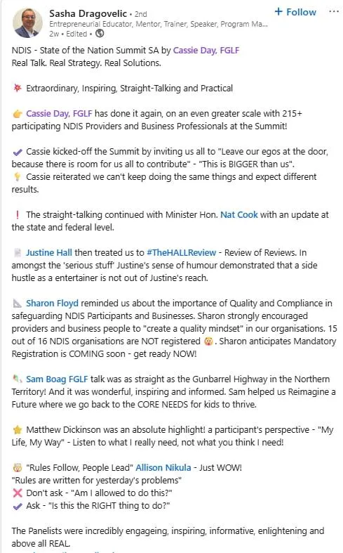 In late August 2025, over 220 NDIS Sector Leaders, Professionals